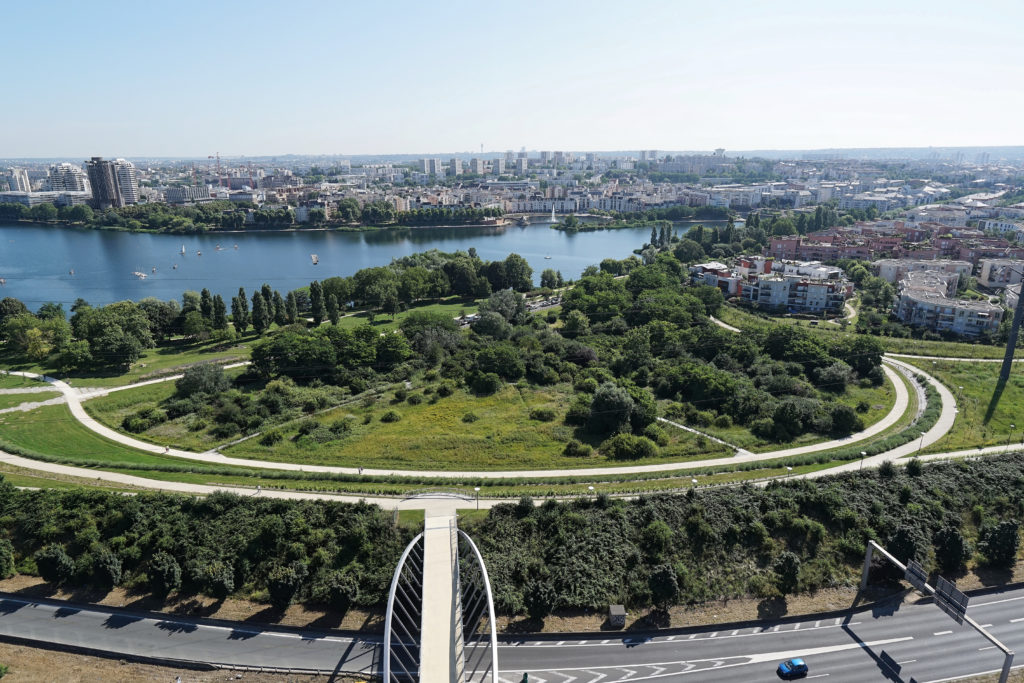 À terme, les arbres constitueront un effet de filtre entre la base de loisirs et la prairie. Le long de la ZAC, un sous-bois dense couvrira la clôture de la propriété pour maintenir l’intimité des logements. La limite avec la base de loisirs doit se fondre dans l’espace. Il a été proposé à Créteil de renforcer les plantations de ce côté. Un gradient végétal partant des berges permettra de développer un milieu humide : enrichissement de la phragmitaie, plantation de saules, aulnes et peupliers blancs…